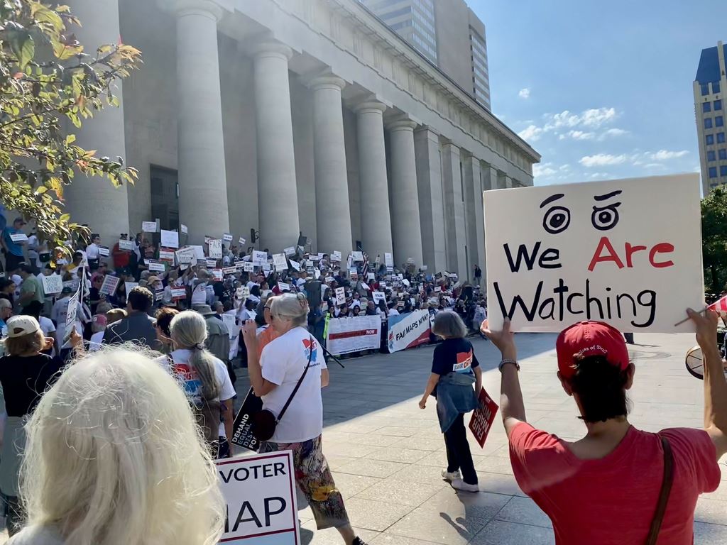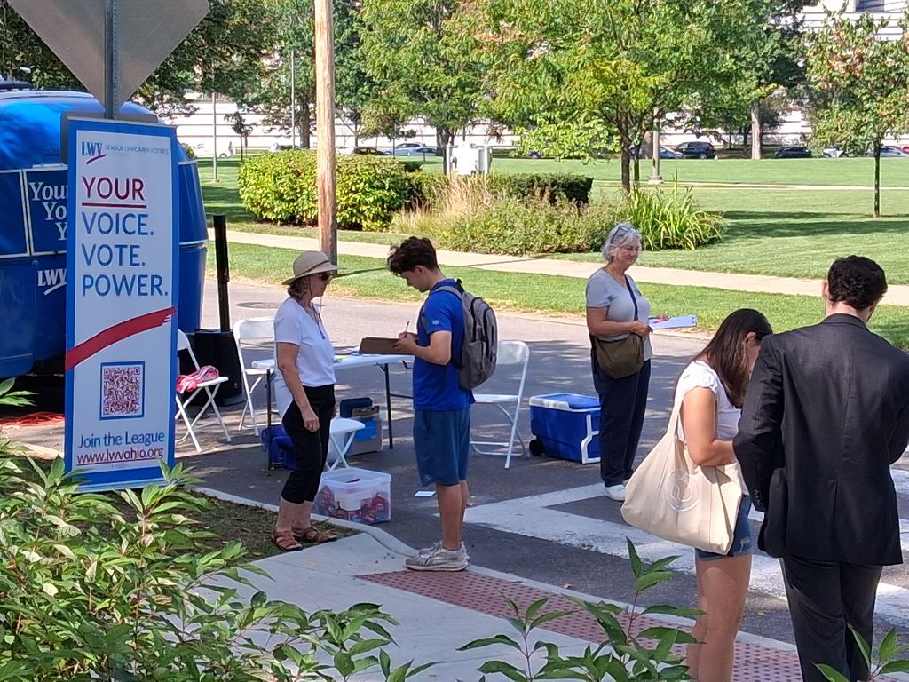 We extend our thanks to Gale Husney and her team for making the Northeast Ohio section of the second annual college tour a huge success. According to event organizer, Trevor Martin of LWVOhio, volunteers spoke to more than 200 students, registered twelve new voters and received nine absentee ballot requests at Case Western Reserve University and Baldwin Wallace University.