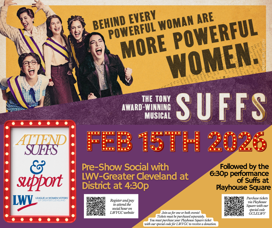 Support the League of Women Voters of Greater Cleveland while enjoying the play Suffs, about the enduring legacy of the Women's Suffrage Movement.